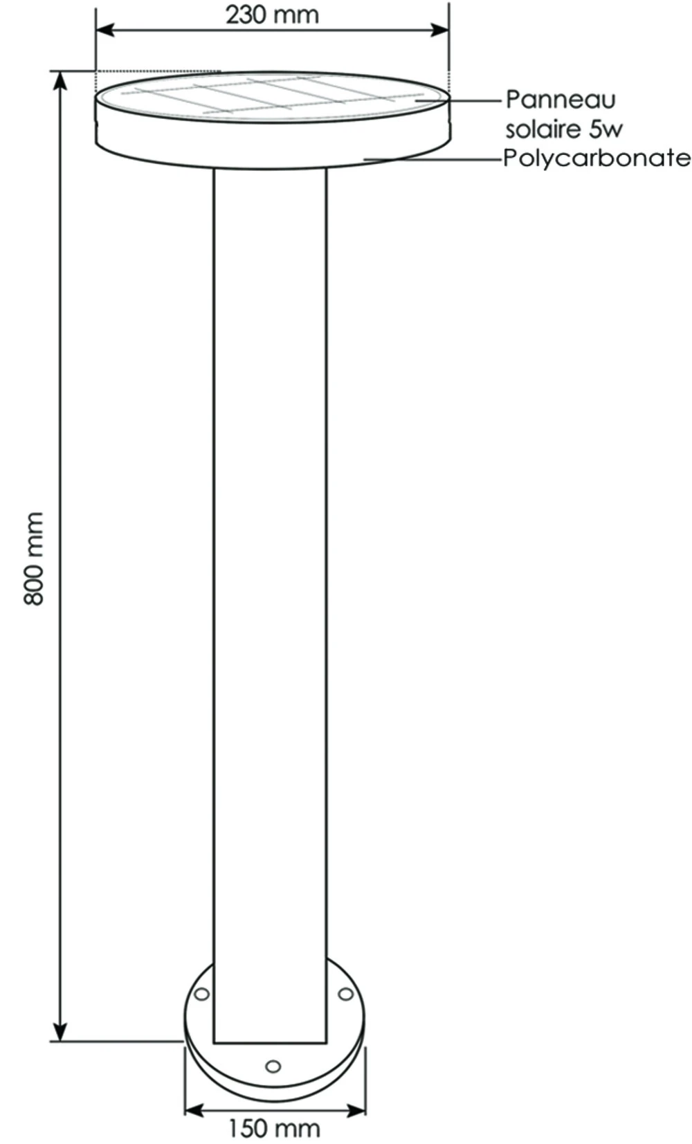 Borne solaire california/3cct-3000°k-4000°k-6000°k/420 lumens/batterie li-ion 1500mah-7,4v/panneau solaire 5w/gris anthracite/ip65/hauteur 80 cm