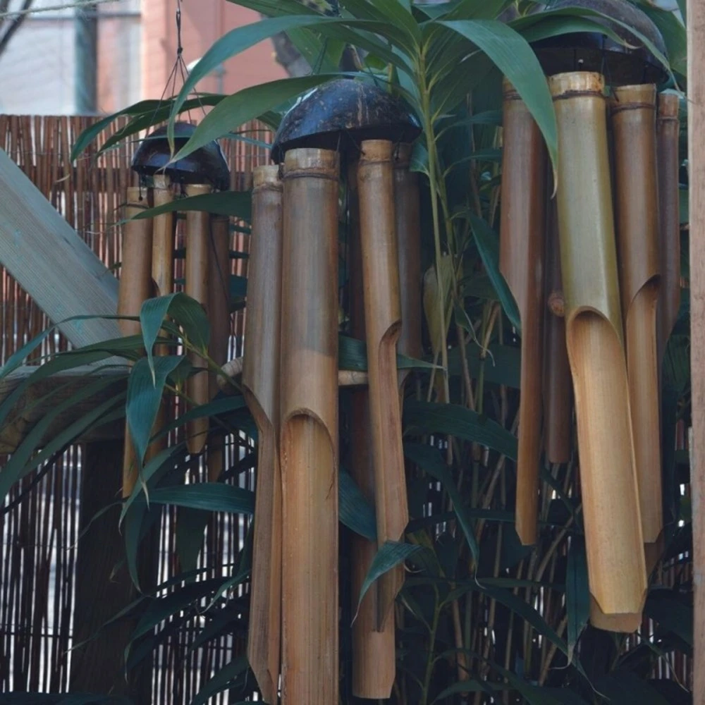 ce carillon est composé de tubes de bambou d’indonésie, entièrement sculptés à la main. Grâce au vent, les tubes de bambou s’entrechoquent et produisent un son mélodieux et relaxant.