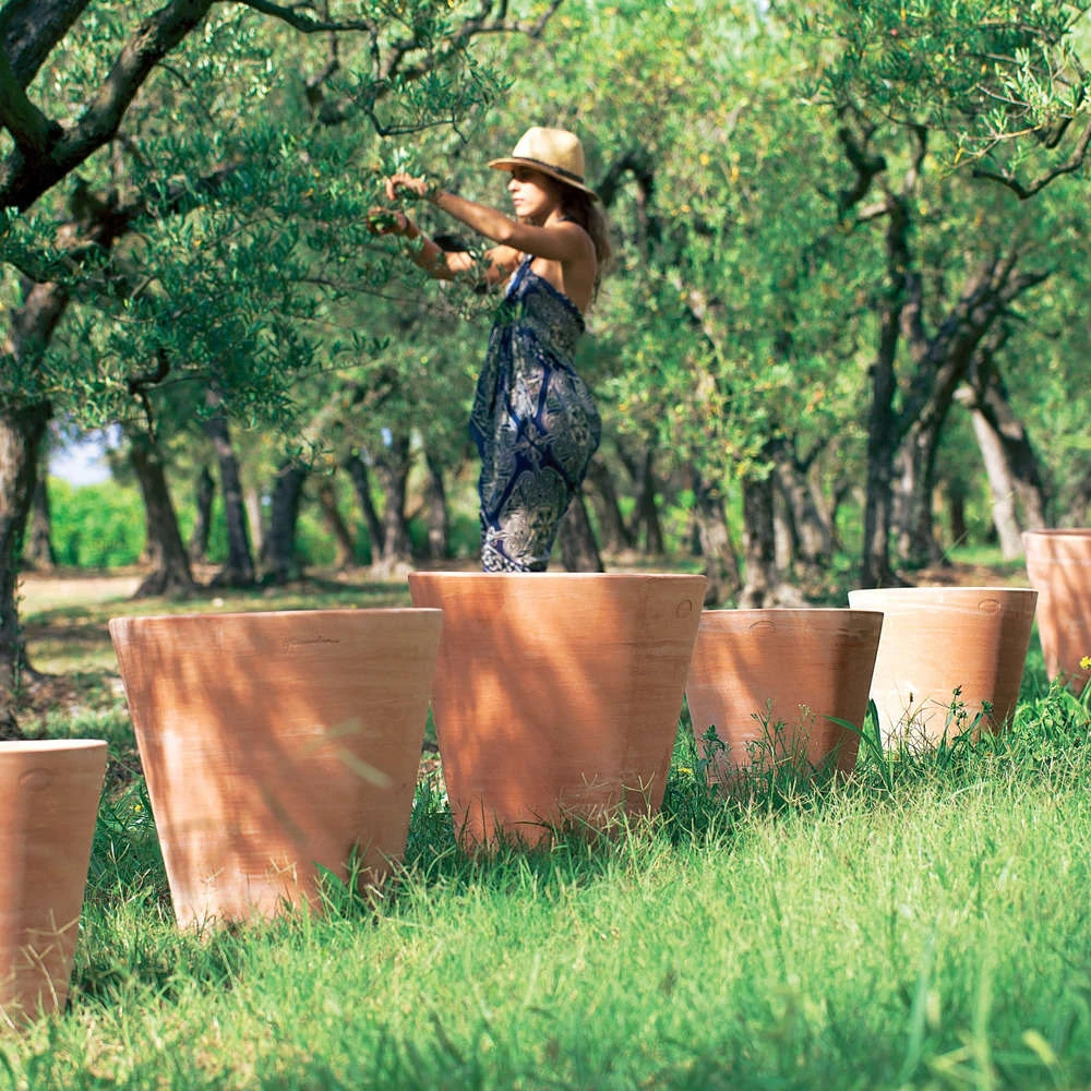 Ce cuvier 100% naturel est fait main à partir de terre cuite. Son design très contemporain et sa jolie couleur de terre naturelle, en font un accessoire de décoration à la fois authentique et de qualité. Résistant au gel, ce cuvier a été conçu spécialement pour apporter un environnement adapté aux besoins de vos plantes, tout en offrant à votre espace une ambiance zen et chaleureuse. Dimensions : D.47 X H.48 cm