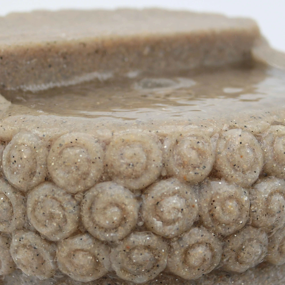 fontaine de jardin en forme de tête de bouddha. La fontaine d’extérieur avec une tête de bouddha, symbole de plénitude et d’équilibre intérieur, est un accessoire déco pour le jardin, le balcon ou la terrasse. Le ruissellement de l’eau, qui se fait en circuit fermé, génère un bruit de fond discret et apaisant. La fontaine tête de bouddha est munie d’une led de couleur blanche qui offre un éclairage d’ambiance le soir et la nuit, tout en mettant votre extérieur en valeur. La fontaine bouddha pour jardin est conçue pour une durée de vie optimale en extérieur, elle est intégralement construite en polyrésine et fibre de verre, avec projections de poudre de verre pour un rendu granit naturel. La fontaine de jardin en fiberstone est résistante aux rayons ultraviolets et aux intempéries : vous pouvez l’installer dehors tout au long de l’année. Le système de pompe s’installe en toute facilité, il est fourni avec un câble d’alimentation d’une longueur de 5 m. La fontaine avec tête de bouddha mesure 28 cm de côtés et 46 cm de hauteur. La notice pour le montage est incluse.