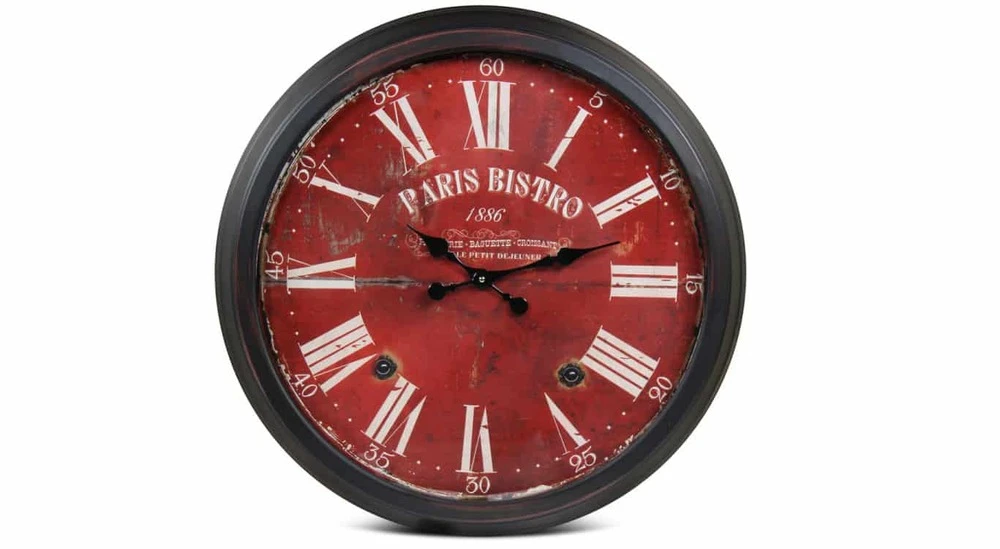 soyez original ! Apportez une touche vintage et chaleureuse à votre décoration avec cette grande horloge ancienne murale paris bistro en métal.