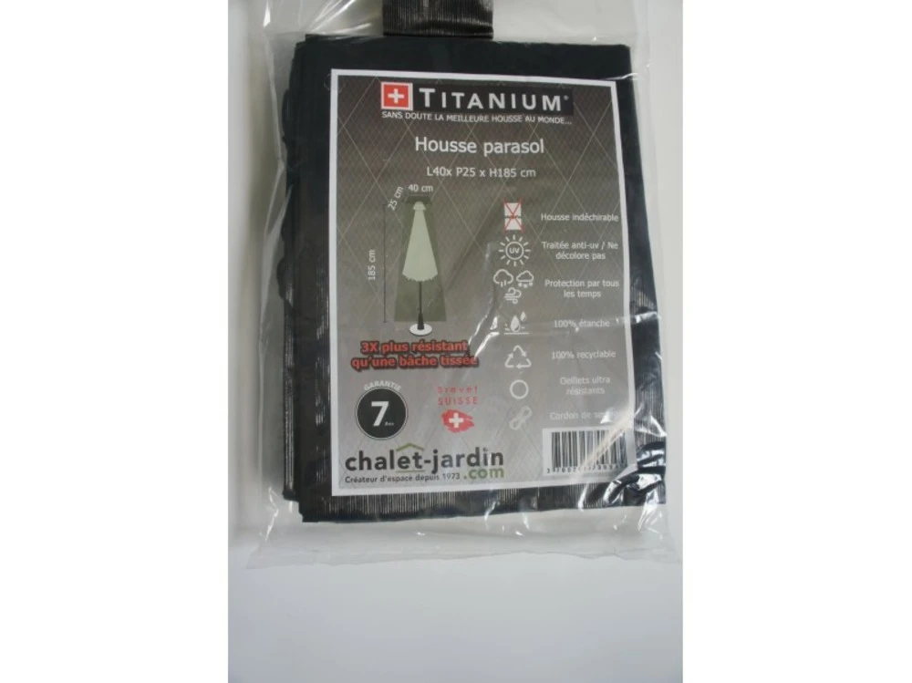 Techniquesdimensions ext. Hors tout (l x p x h) : 40 x 25 x 185 cmgrammage : 90 g/m ²matiã¨re : polyã©thylã¨necoloris : noir rayã© blancinclus : cordon de serrage ultra rã©sistantssouple et lã©gã¨re / 100 % recyclable / 100 % ã©tanche ã l’eau, ã la poussiã¨re et aux uv / rã©siste aux changements de tempã©ratures et ã de nombreux produits chimiquescolis dimensions : 40 x 30 x 40 cm poids : 0,150 kgcette housse de protection pour parasol dã©portã© vous permettra de protã©ger votre parasol en le gardant au sec et ã l’abri des intempã©ries. Cette housse de protection bã©nã©ficie d’un procã©dã© ultrasonique pour une meilleure rã©sistance, systã¨me brevetã© (suisse).avantages : ultra rã©sistant, technologique, opaque, traitã© pour une protection uv, pratique, ne nã©cessite aucun entretien