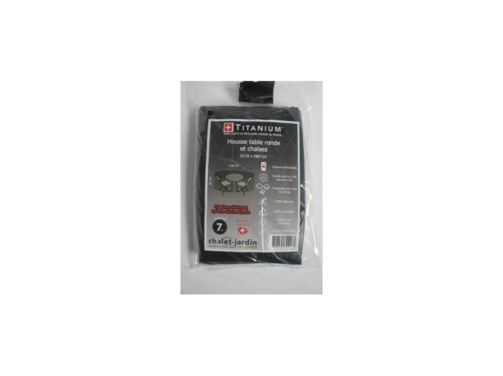 Techniques dimensions ext. Hors tout (l x p x h) : 120 x 120 x 85 cm grammage : 90 g/m ² matiã¨re : polyã©thylã¨ne coloris : noir rayã© blanc inclus : cordon de serrage ultra rã©sistants souple et lã©gã¨re / 100 % recyclable / 100 % ã©tanche ã l’eau, ã la poussiã¨re et aux uv / rã©siste aux changements de tempã©ratures et ã de nombreux produits chimiquescette housse de protection pour votre table ronde et vos chaises vous permettra de protã©ger vos chaises en le gardant au sec et ã l’abri des intempã©ries. Cette housse de protection bã©nã©ficie d’un procã©dã© ultrasonique pour une meilleure rã©sistance, systã¨me brevetã© (suisse). Avantages : ultra rã©sistant, technologique, opaque, traitã© pour une protection uv, pratique, ne nã©cessite aucun entretien
