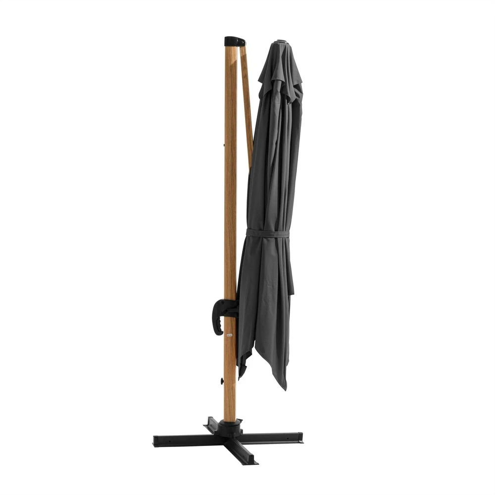 Parasol Déporté Carré 3x3m Effet Bois Anthracite