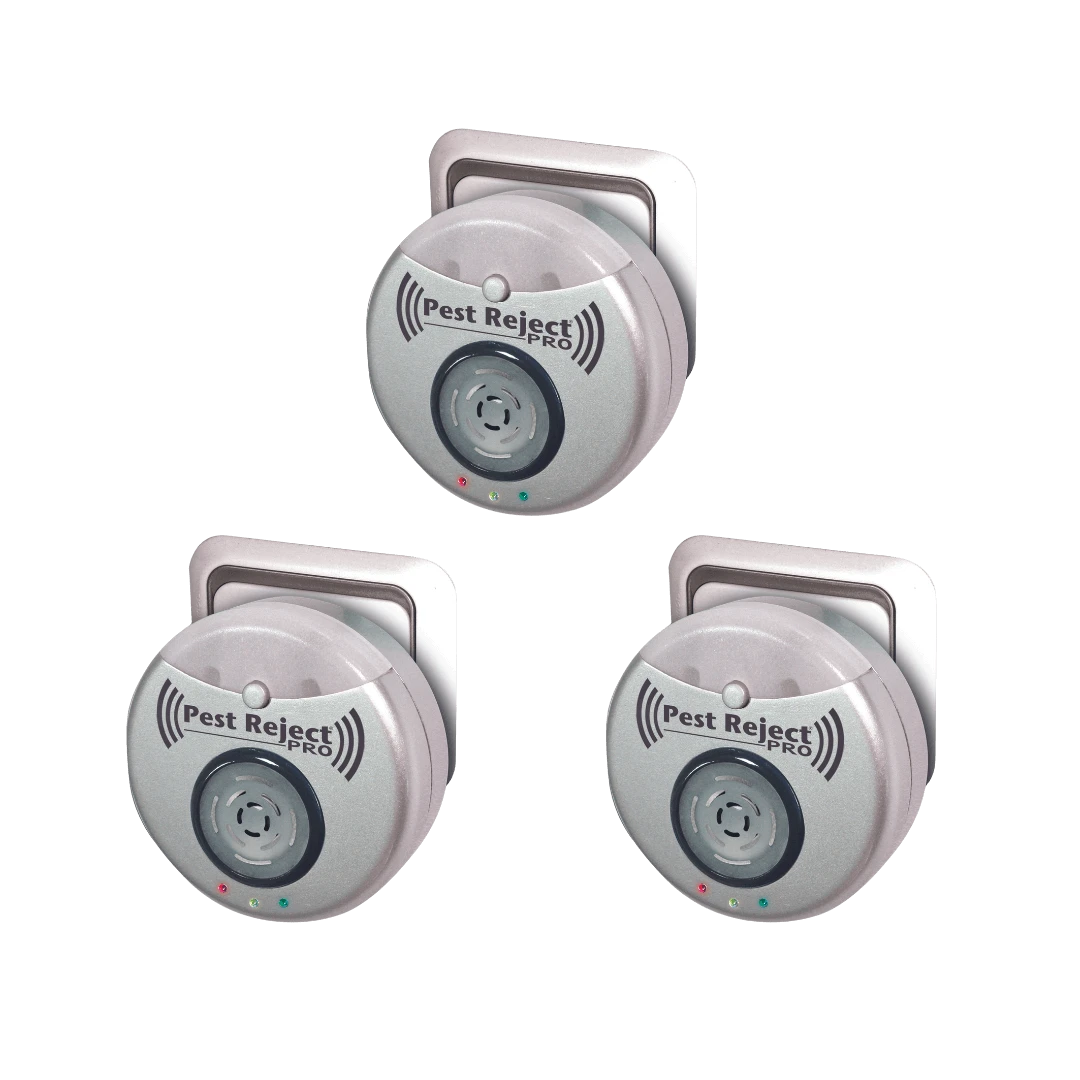 pest reject pro maintient les nuisibles à distance sans produit chimique. Il fonctionne grâce à une technologie à ultrasons électromagnétiques qui lui permet de couvrir 200m². La façon la plus simple de tenir les nuisibles à distances ! Vendu en lot de 3.